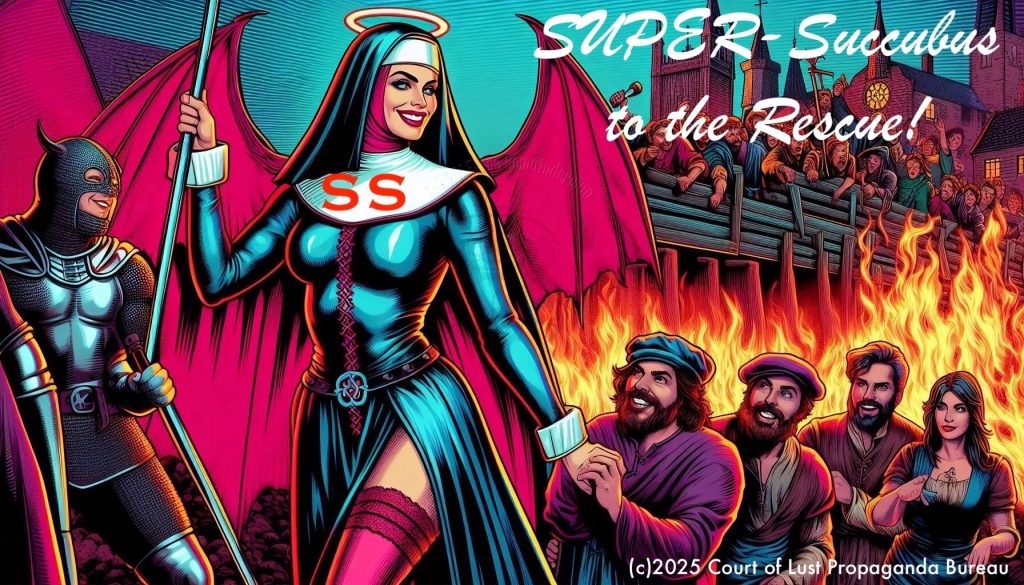 She allowed the pause to continue, and the girls to think, for a good minute or more that seemed even longer, before she continued:  “The Succubae are engaged in a contest with the Lord and the Angels.  But the battle between good and evil takes place within each human soul.  Not on Earth, or in Hell.  It is not a war between realms.  It’s a competition for recruits.  And at least Penny will have been formally presented with the question before, why does the Lord allow Hell to tempt humans?  I won’t answer that question for you, I’ll ask you to answer it yourselves.  Think on it a good long while, and discuss it with one another.  I will look forward to hearing what you have concluded when you’re confident.  Obviously I wouldn’t have let the priests have you and train you for so long, if my only preoccupation were human souls.  Or if I wanted to corrupt yours.  Or for you to corrupt others’ souls.  Would I?”  She enjoyed the silence she heard, even Penny too confused and thoughtful to argue.
