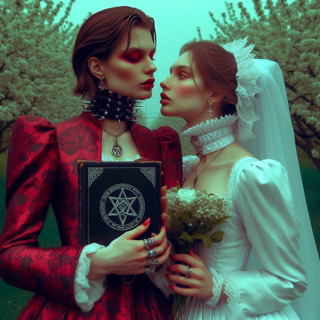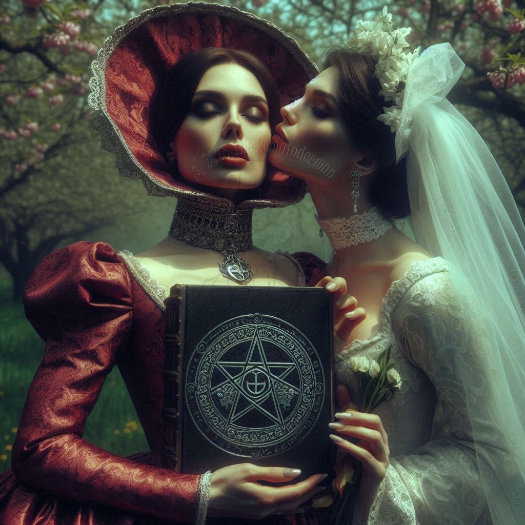 For a moment, Channah could see, Penny’s mind wanted to resist the swirling storm of natural and supernatural (and perhaps even unnatural) emotion around her and within her.  The Penny she had always been, wanted to cover herself, no matter the feelings roaring and raging through her, her eyes rolling around wildly in their sockets like those of a panicked horse, taking in the sights around her.  Miryam, Rivqah, Judah, Fang, and the other eight members of the Coven watched them with hungry, desiring, rapacious eyes and the tense posture of predators aroused by the sight of their alpha feeding on desirable prey, hopeful despite themselves and imagining taking their own turns.  Esmeray and Hong watched too, with their five blindfolded, bound jawari kneeling before them, Hong coolly appraising and evaluating with, Penny might imagine, just a hint of contempt in her eyes; and  Esmeray fierce and attentive, eyes darting everywhere, with the attitude of a parrot whose feathers have been ruffled reclaiming her dignity, half as unsighted to Channah and Penny in this moment as the blinded jawari before her.