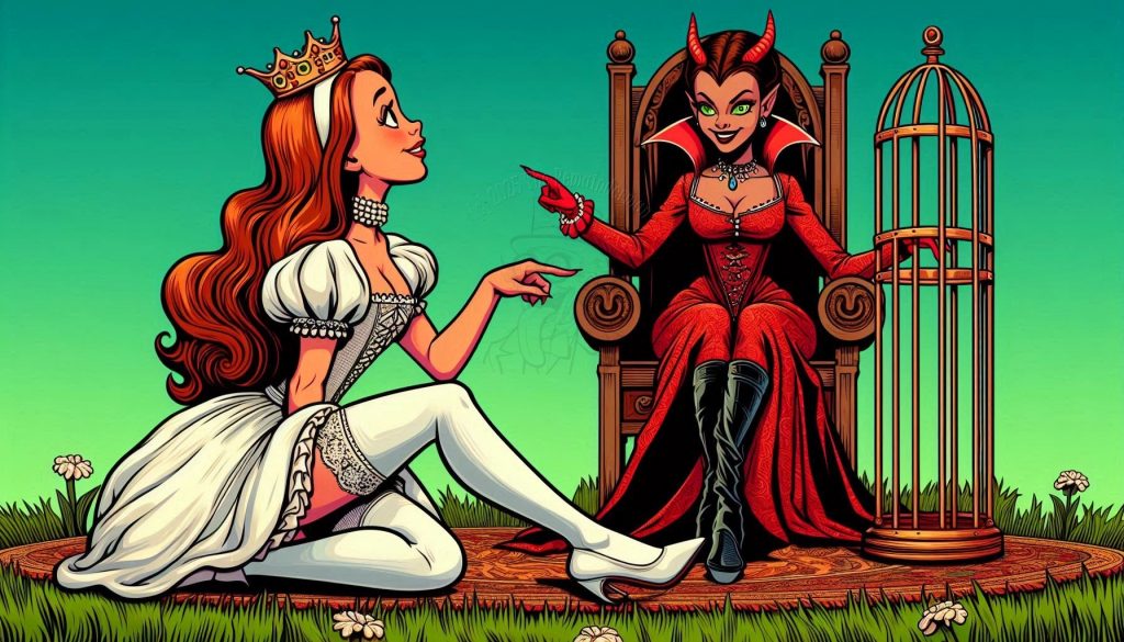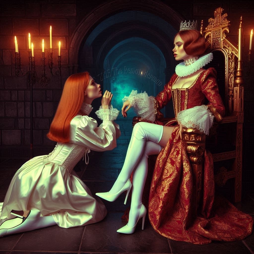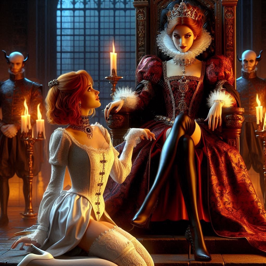 With a mock gasp of surprise, Channah swung her hip back across Penny, using her right hand to adjust her skirts, her left hand continuing to secure both of Penny’s wrists.  She barely breathed, almost reverently:  “You were built to obey and to please, darling.  Or I think from now on, is it okay if I call you ‘Pleaser’?  Yeah, that’s a good girl.  There…” she hissed.  “I’m sitting a bit further forward so it’s more comfortable for you.”  Penny groaned raggedly, feeling the soft, reassuring touch of Channah’s warm skin on her hips, electrifying every single nerve-ending as the dominant succubus stifled another smile.  “Don’t you dare ruin this incredible moment with any selfishness, do you understand me, Pleaser?”