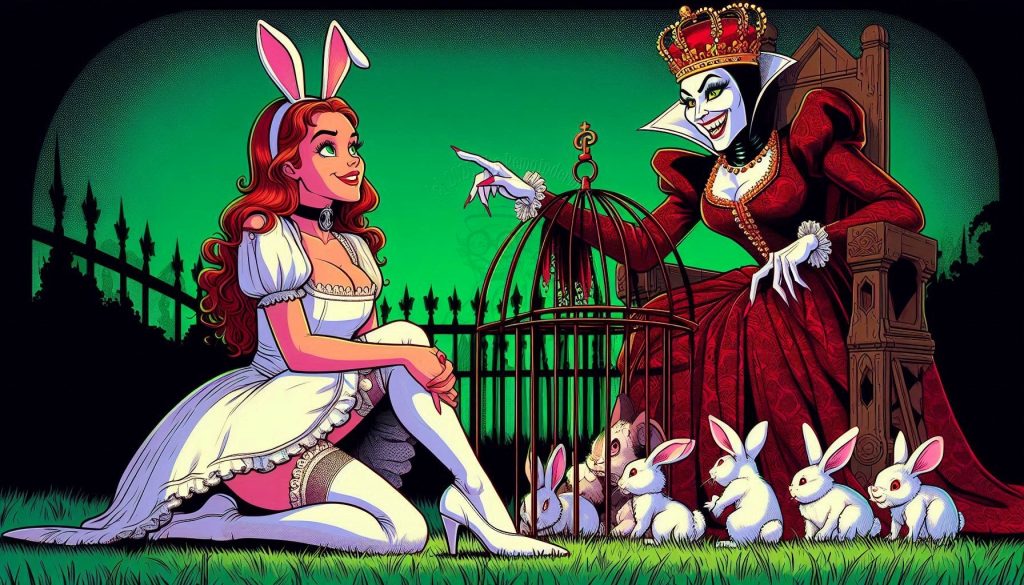 Frantic for Penny’s consciousness to come back to her, and irrationally irritated with Penny for not responding faster than her species was capable of, Channah saw the girl’s soft, sticky little pastry curled between her legs, as delicious and unthreatening as a snail cooked in butter, and decided on a wicked plan to interest her and punish Penny for—whatever it was she wanted to punish for.  Promptly, considering it only from the lens of her own desire without even considering any negatives or what Penny would feel beyond what Channah wanted her to feel, Channah converted her intentions into action, snatching up Penny’s cage from where she had tossed it aside and locking it again.