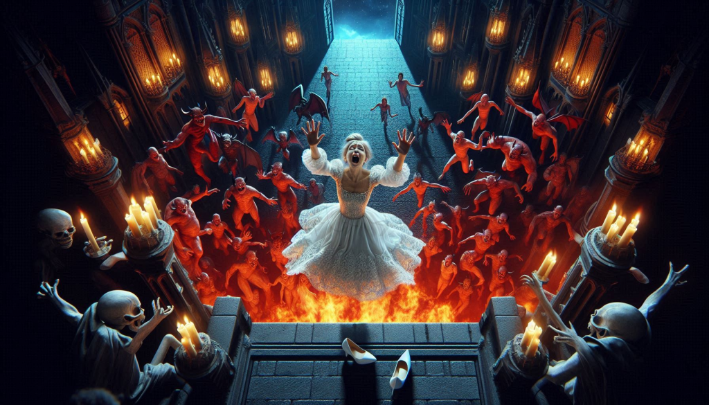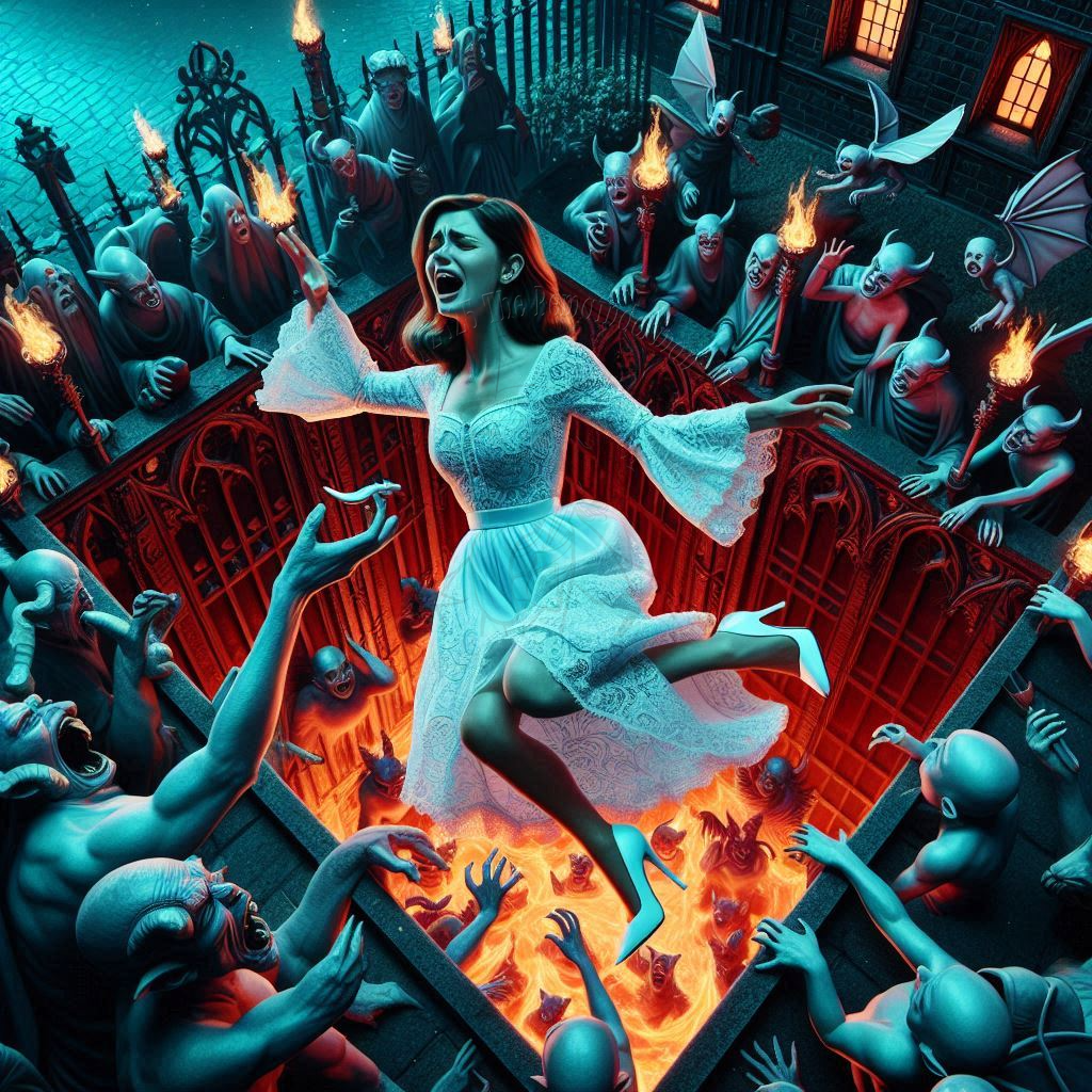 What was happening to her body?!  Inside her own body?!  Her mind knew because it remembered.  When it was aware, it had rarely even realized how thoroughly it knew it was alive every second.  It felt its own breath, felt its own heart, sometimes even heard them or felt the rise and fall of its chest; sometimes smelled and felt the slick moisture of its own sweat.  Now, she could not even tell if her body—if she—was still there, or had ever really been there.  She didn’t know if she had ever even had a body at all.  Perhaps it had all been her imagination.  Or was her body being destroyed, inside and out, continuing the assault every sense she’d had, had been screaming at her to report?  It had to be; her senses were gone, unless reality was actually gone—and she had no way to tell.  Was she even now, falling towards the sea of devils and demons below, who would tear her to pieces for all eternity, over and over again?  Or had she died, and these were the last seconds of her consciousness, mere seconds stretching and lasting in a final desperate effort to cling to life?