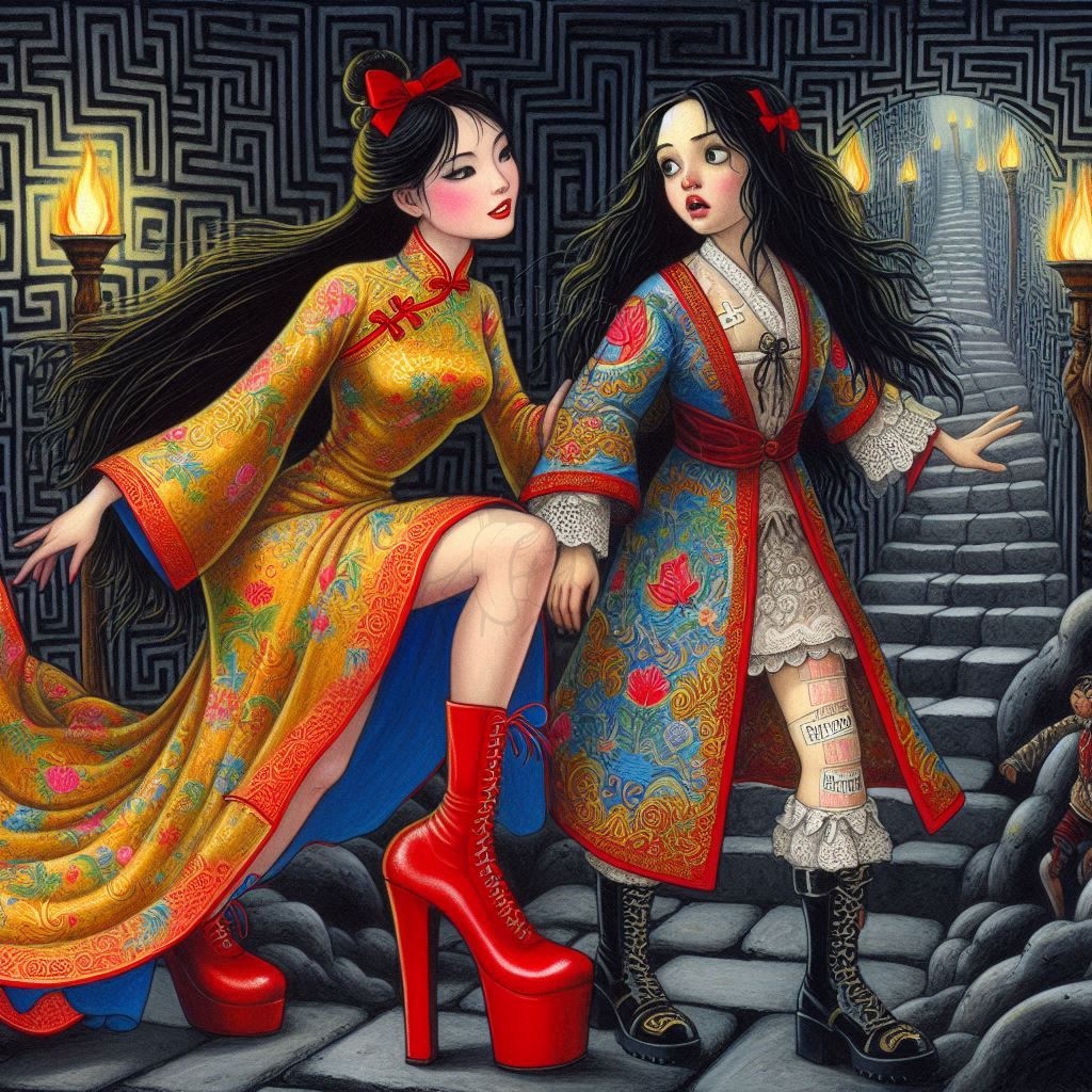 “Then why are we both laughing?”  Channah threw up her hands in exasperation as she stood, flicking her head at Hong’s girl and watching from the corner of her eye as the girl hopped to her feet and darted to help her sisters, her little noodle flopping irrelevantly.