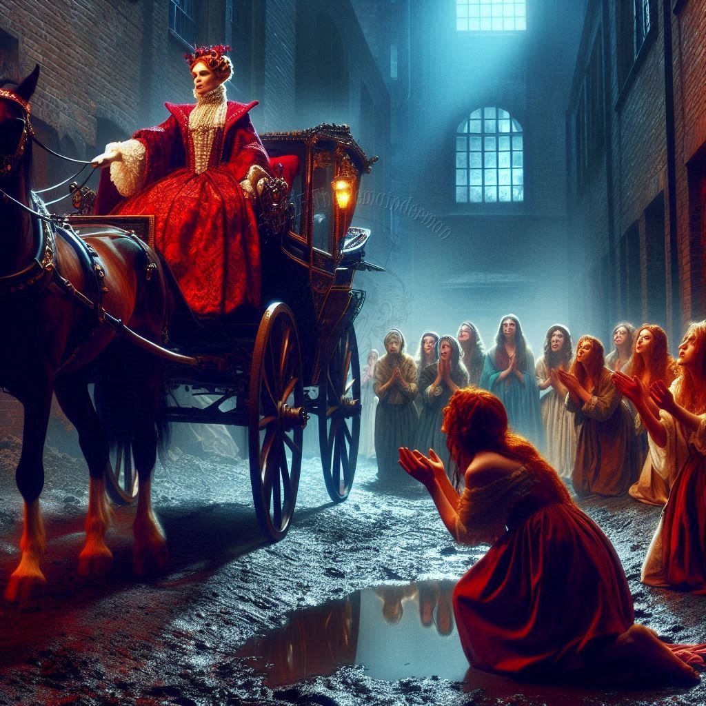 “Darling, you’re covered with dirt and oil and—oh, yes, your own water, and that of not one, but two different succubae.  Your dress was practically ripped off your body and is filthy and torn.  NO. ONE. Is going to see you and think anything other than the truth, girl:  You are a fallen woman, now, fallen almost as far as I have.”  She sniggered, approaching Penny and kissing her, softly, on her quivering lips, playing with her, before whispering:  “My fallen angels.  I hope you NEVER manage to accept that.  It is so. Hot,” she bit Penny’s lip, enjoying the girl’s involuntary shudder.  “That my little medlar still feels like a cherry.  Never fucking lose that…” and she laughed.  “Princess!  Pleaser, Puddin’, Princess!  You’re the clothes-horse of nicknames.  I adore you!”  Then she stepped past Penny, leaving her with the beginnings of a renewed excitement the girl was still unable to wrap her reason around.  As Channah snaked her arm around Chastity’s neck, the motion and the shortness of the chain she had on her girls forced Penny to press her naked flesh up tightly against the back of Channah’s sodden, disreputable, but fully-intact dress, even as she pulled Chastity in tightly for a kiss.  Channah murmured back to Penny:  “Kiss the back of my neck softly, bitch, and say ‘thank you for turning me out.’”