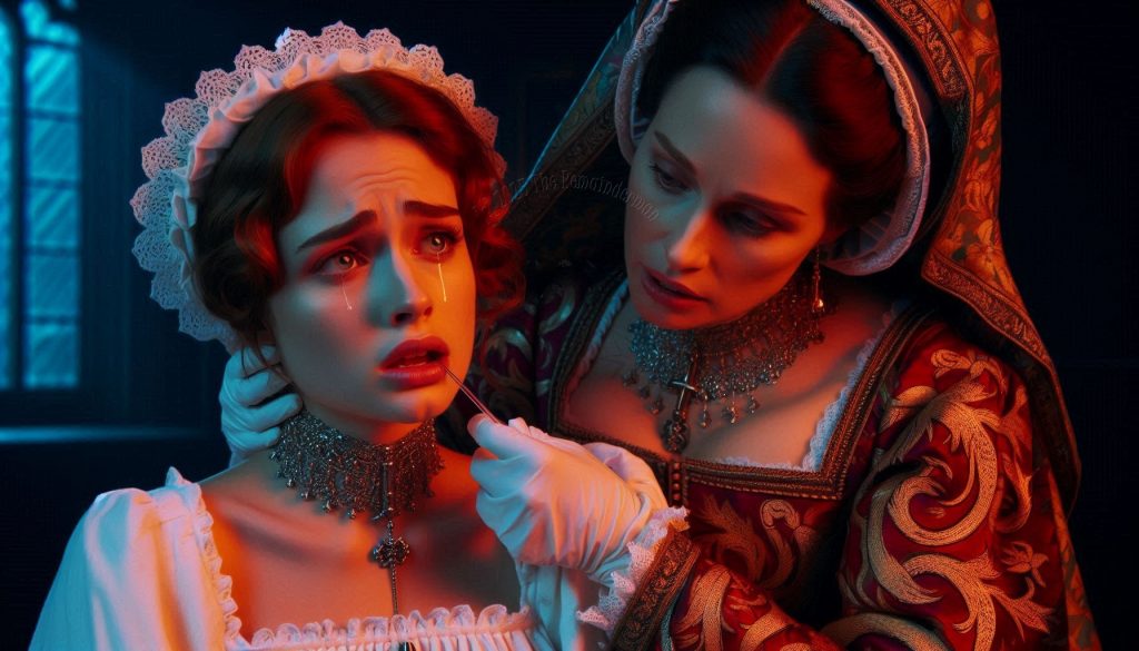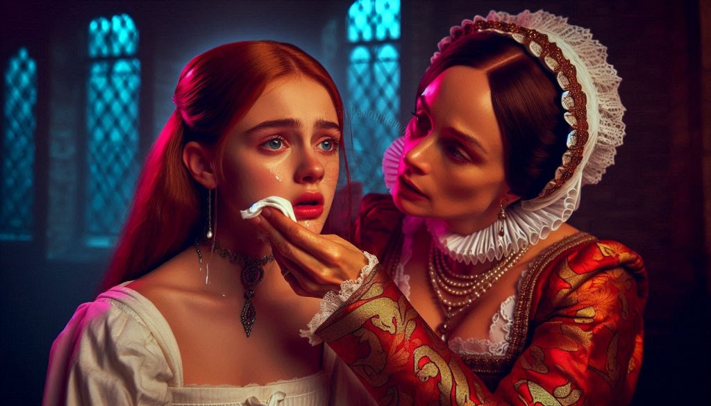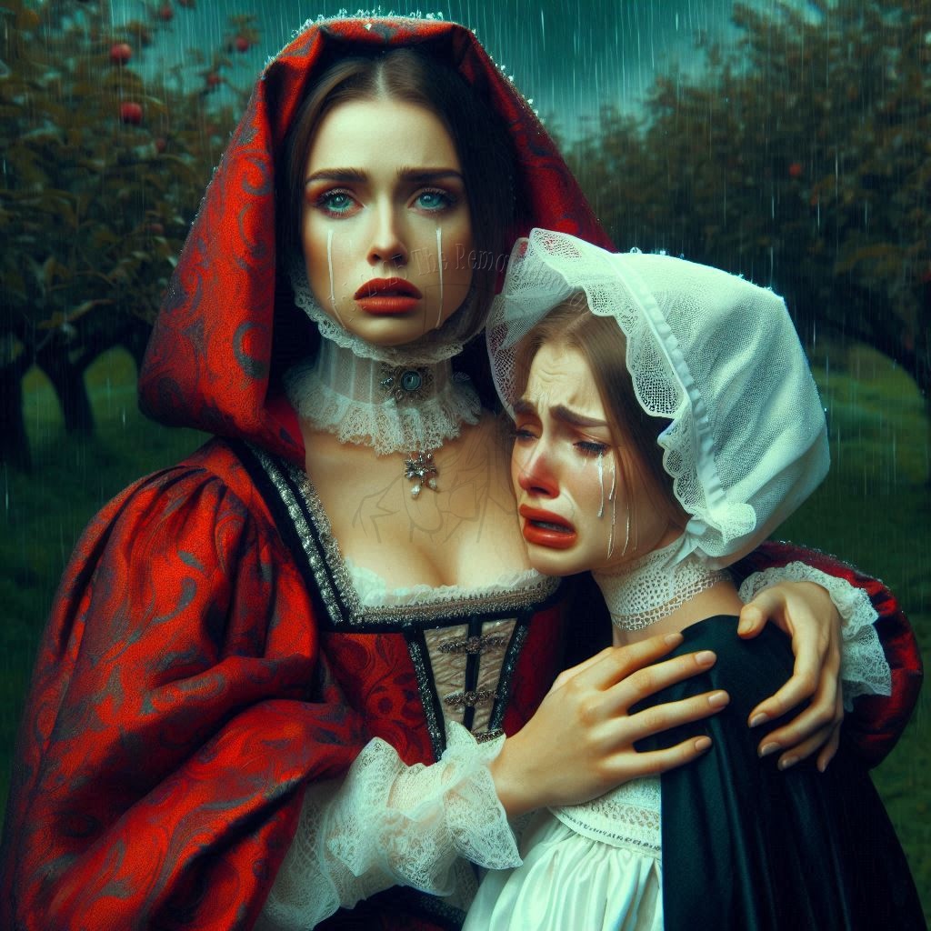 She rolled her eyes in disbelief that she was so afraid of what was to come, she was continuing to cry as she knelt under Channah’s feet, holding onto her as if for dear life.