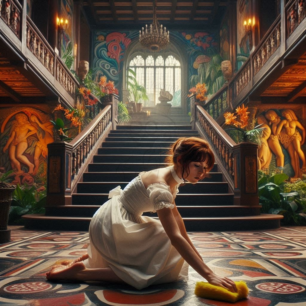Literature Section “07-30[X] Chore Time for Working Girls”—more material available at TheRemainderman.com—Part 30 of Chapter Seven, “Channah’s Slavegirls:  Pawns of the Court of Lust”—Abridged 1621 words—Accompanying Images:  2139A-2140D—Published 2025-07-30—©2025 The Remainderman.  This is a work of fiction, not a book of suggestions.  It’s filled with fantasies, stupid choices, evil, harm, danger, death, mythical creatures, idiots, and criminals. Don’t try, believe, or imitate them or any of it.