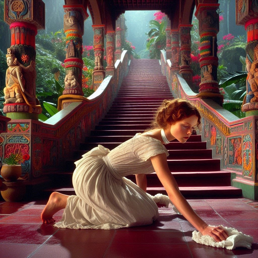 Literature Section “07-24[X] Cleaning Channah’s Feet”—more material available at TheRemainderman.com—Part 24 of Chapter Seven, “Channah’s Slavegirls:  Pawns of the Court of Lust”—Abridged 891 words::Explicit 1113 words—Accompanying Images:  2092-2095—Published 2025-07-24—©2025 The Remainderman.  This is a work of fiction, not a book of suggestions.  It’s filled with fantasies, idiots, and criminals. Don’t believe them or imitate them.