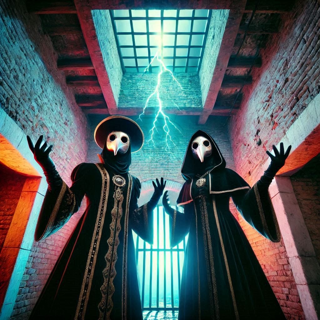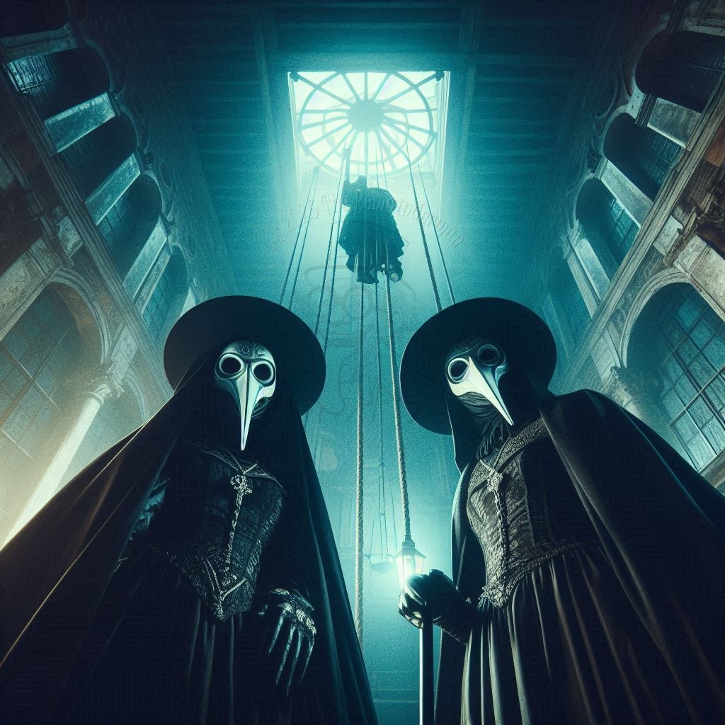PREVIOUSLY:  Channah and Rivqah have just killed two Venetian soldiers and captured two Venetian officials who were supervising their torture of a Venetian prisoner in the Room of Torment of the Doge’s Palace.  Now one of Venice’s 3 Capos—who rotate responsibility for day-to-day management of Venice—awakens to find himself bound and hanging by his wrists, which are tied behind his back, with his knee shattered, learning that his captors know him already.  NOW: