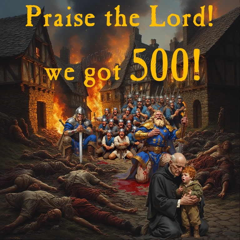 “God’s light! Finally! Here you all are. I practically ransacked the castle. What divine office are we celebrating mid-afternoon?! We thought the damned savages must have taken the lot of you!”
