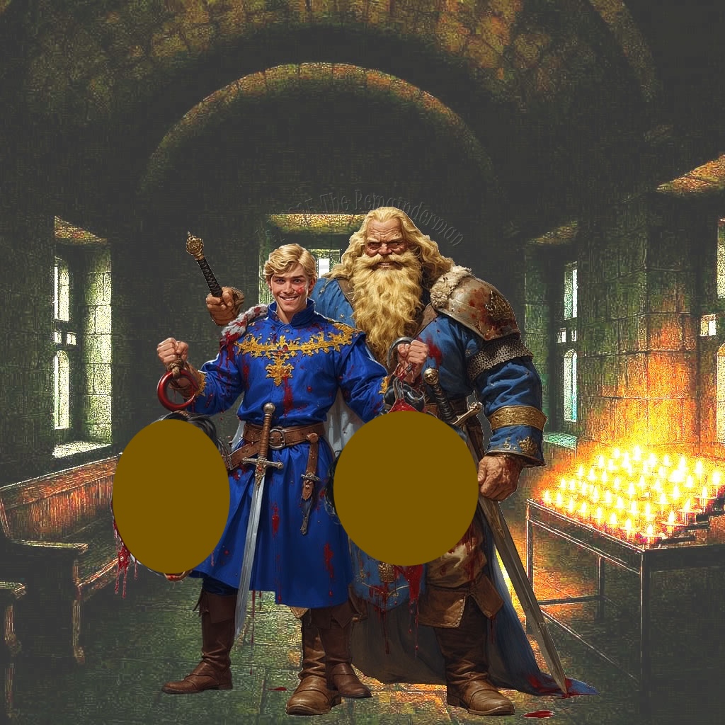 Young Roland guffawed nastily, and even the unfortunate orphan blinked twice, the closest thing to an expression of any kind, facial or verbal, he seemed able to muster, as Lord Wrathdown dumped him unceremoniously onto an empty pew and barked “Shut up!” to his eldest. Nobody else in the room required such a caution; not one of them, not even the stupidest of the castle boys, dared meet the Baron’s eyes, let alone make any sound that might catch his attention. “He’s SEWING?!?! MY SON is SEWING with his Aunt instead of playing with his friends?!”