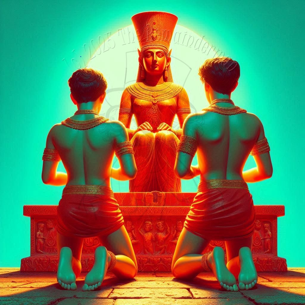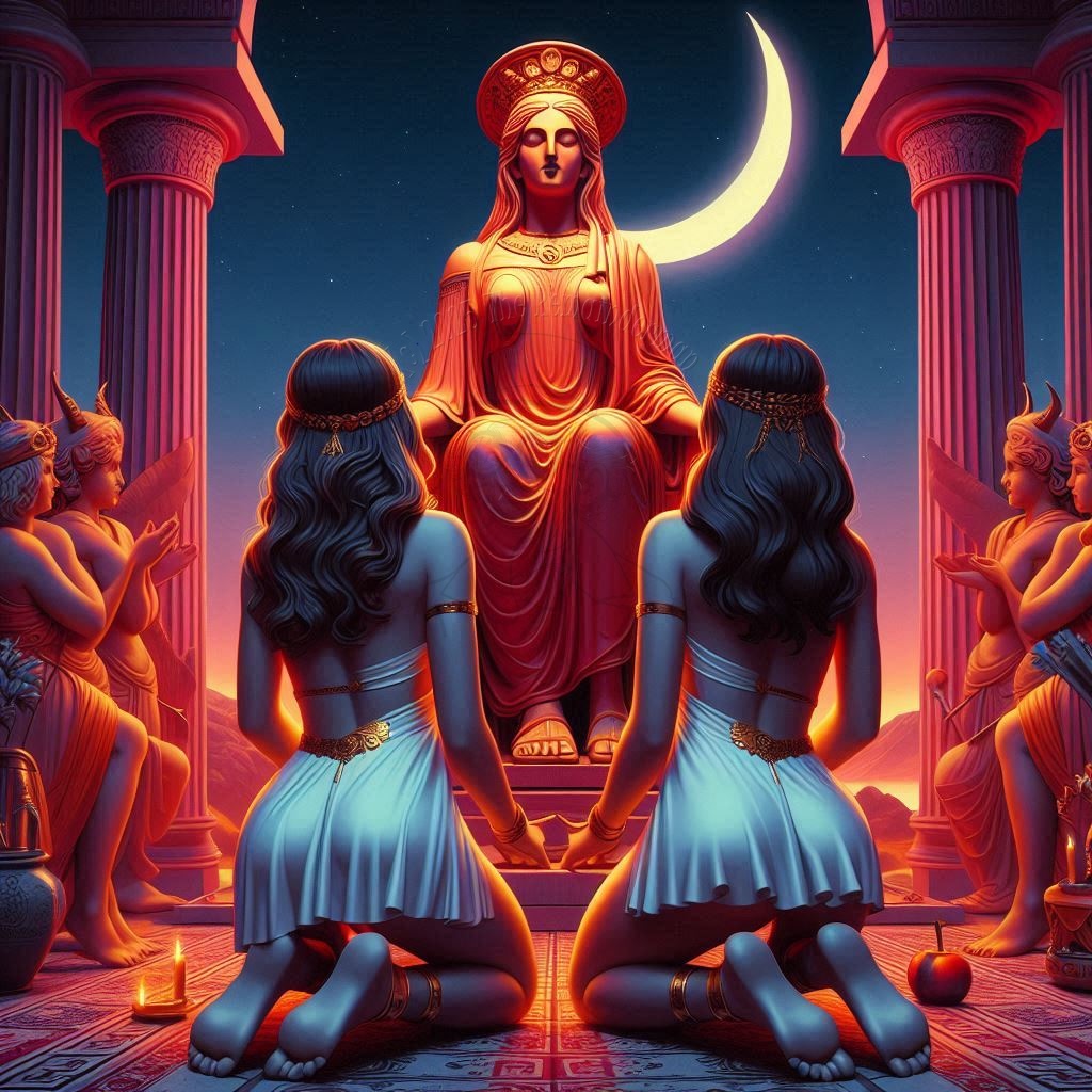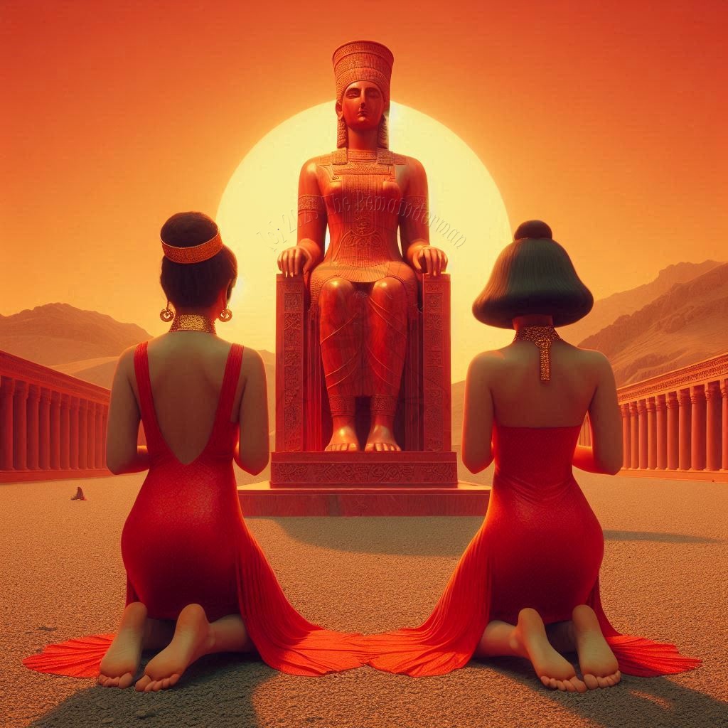 Her bridegirls, on their knees before Channah’s elevated throne, had together placed a fine silver chain around her left ankle, symbolizing her power over them, from which she hung the magical keys to their Svadishthana Cages, as they watched from inches away.