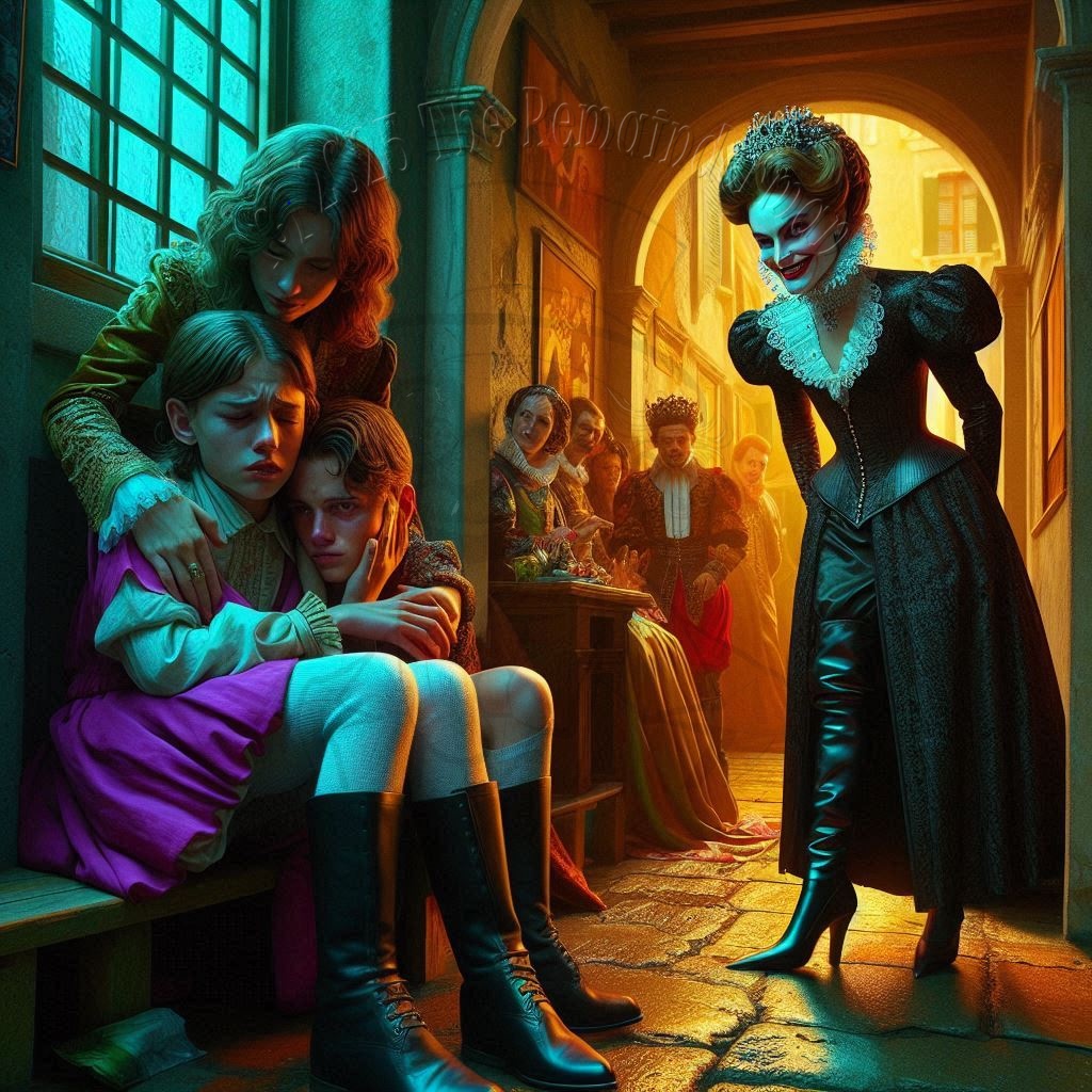 The girls’ governess—a close friend of their mother’s, who had been governess of all the sisters since Margaret the Younger had outgrown her nanny—was sacked for laxness, literally chased off across the front lawn with a broom by the Countess, huffing and gasping and staggering away as fast as she could while her former charges wept and pleaded uselessly on her behalf.  She was summarily replaced by Sindonie Manning, the longtime governess of her own wards, who at least showed them the same kindness she showed their stepsiblings.