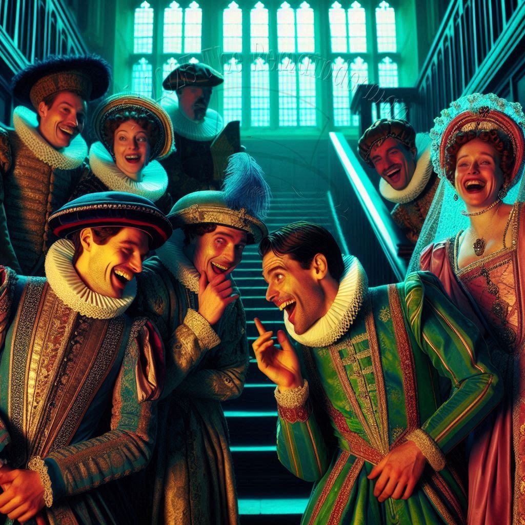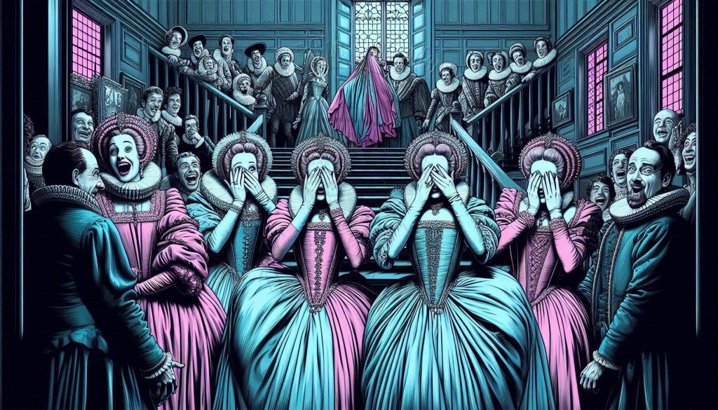 If Lord Robert’s first wedding was a fairy tale, his second was a delicious scandal; and definitely the subject of as much gossip as his first.  Soon after they took their leave of the celebration, the guests near the stairs to the Great Chamber became excited, drawing other guests to them.