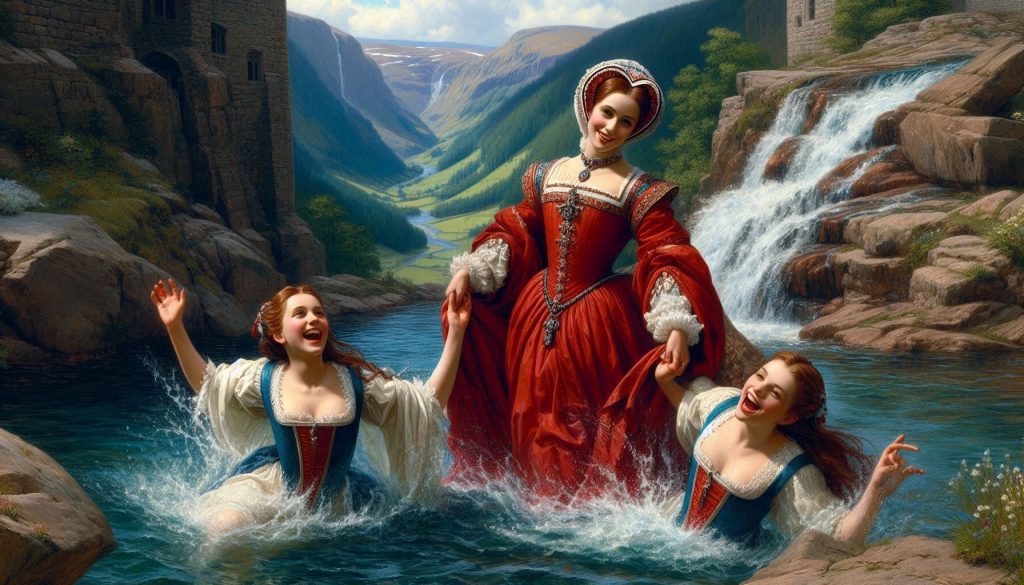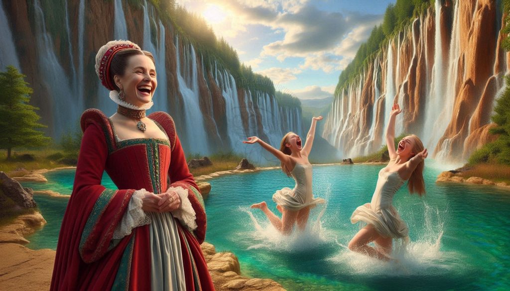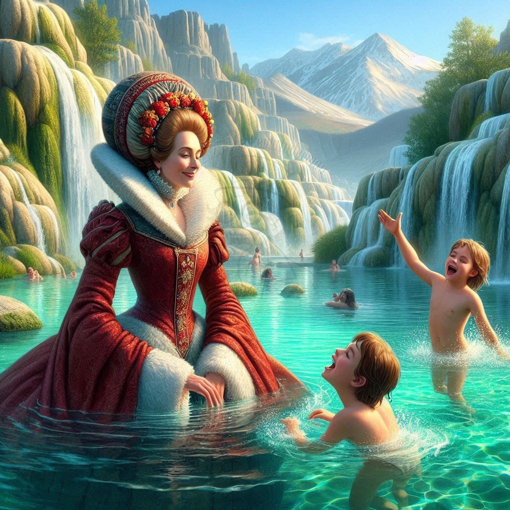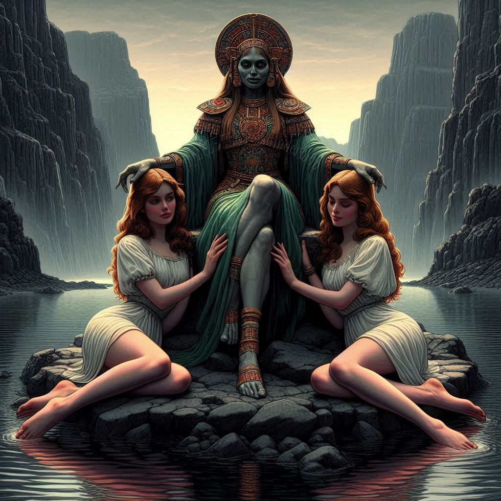 Queen Channah decided it was still too early and cool to sunbathe on her rock, and so she swam instead, enjoying her holiday, the feeling of the water swishing over her skin, and the peace of having nothing to think about or do.  When her abashed girls approached her, heads down, she taught them how she liked to be bathed:  how to wash her hair so it was clean and untangled without pulling it too much, how to wash her face and neck and every other part of her body.  She let each of them wash all of her body, so they could learn; and she made it clear she expected them to remember everything she’d taught them.