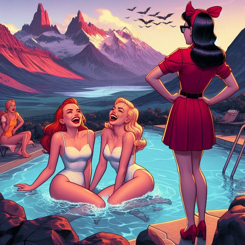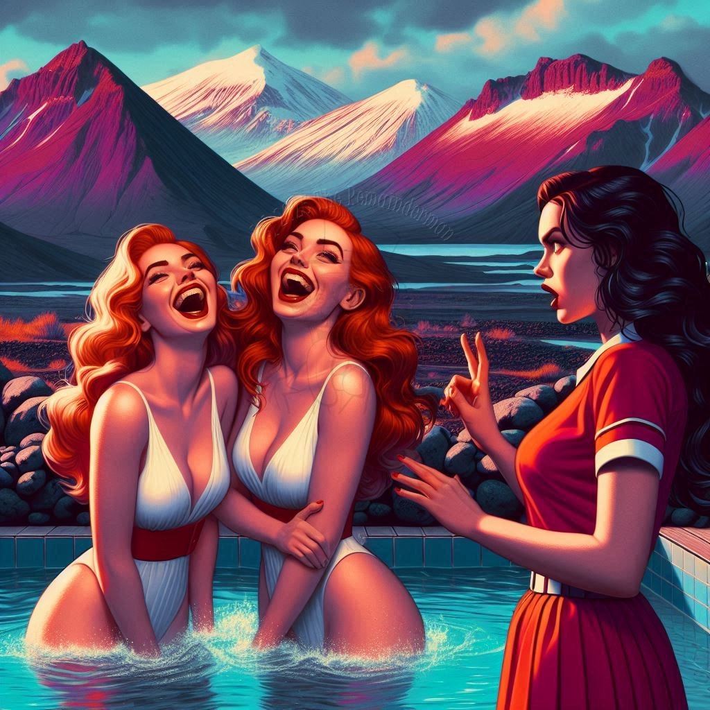 Literature Section “07-05 In the Bathing Pool”—more material available at TheRemainderman.com—Part 05 of Chapter Seven, “Channah’s Slavegirls:  Pawns of the Court of Lust”—1148 words—Accompanying Images:  2003-2004—Published 2025-07-06 (a.m.)—©2025 The Remainderman.  This is a work of fiction, not a book of suggestions.  It’s filled with fantasies, idiots, and criminals. Don’t believe them or imitate them.