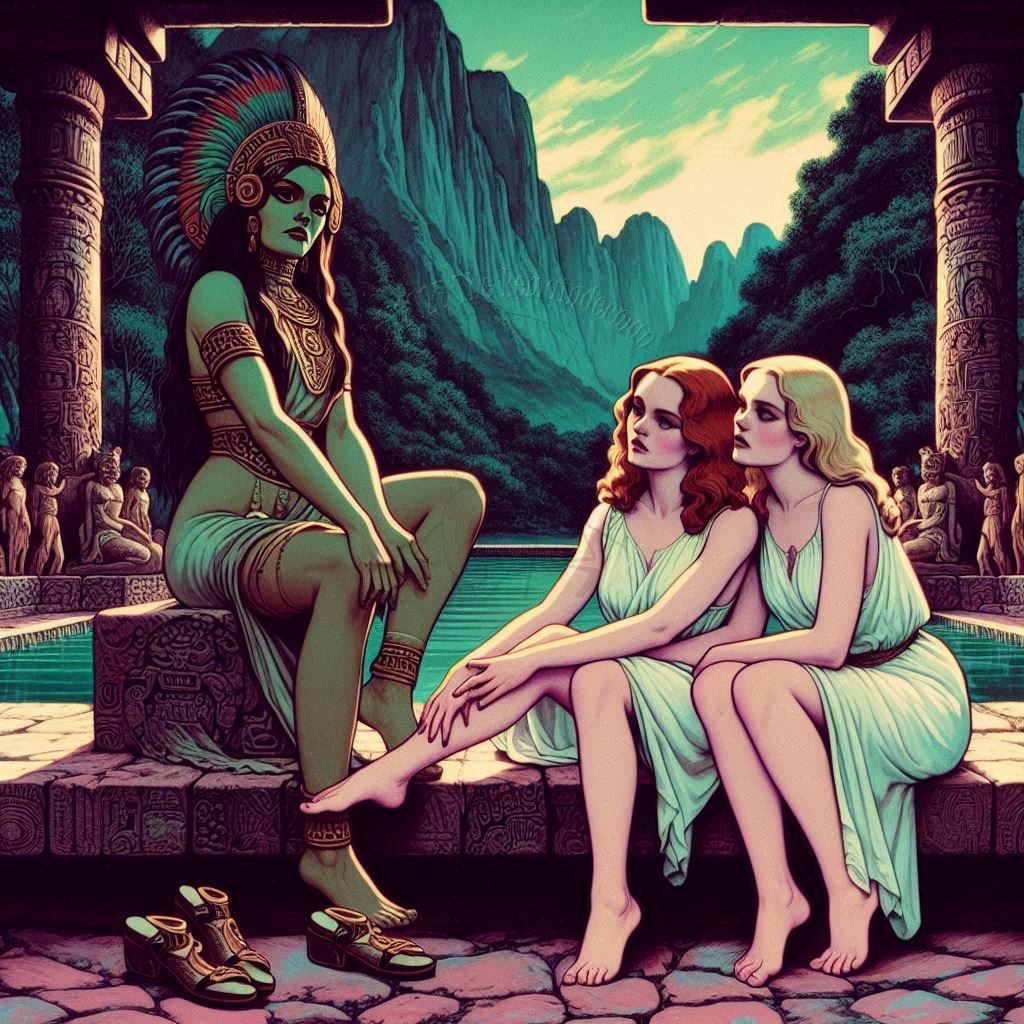 PREVIOUSLY:  For seven days and nights, Chastity and Penance have been tormented, tested, pushed, and bewitched by the succubae and their human operatives, leaving them feeling rootless, lost, malleable, in need of comfort, and desperate for love.  Now, finally, Channah gives them what they long for, introducing them to her private mountain vale.  NOW: