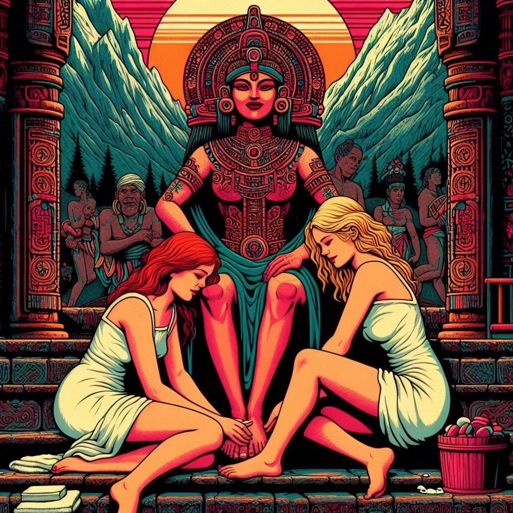 “Now,” she smiled coyly at the girls, “Kneel before me.  Go on, I have to get ready to bathe, too!”
