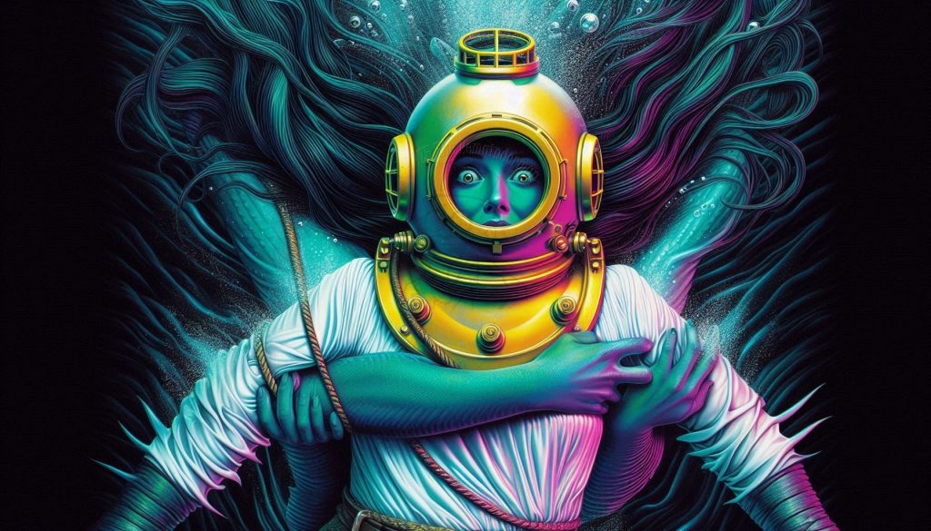 It was a strong smell, a good one, nuanced and heavy and loaded with pheromones targeted straight at Penny’s deepest and oldest urges and memories:  Esmeray.  Esmeray’s panties, hung on her head.  She flushed as deeply red as she ever had, realizing what a stupid, helpless, pathetic idiot she was, and now looked like, dressed like a belle of the ball—the kinky bondage ball—in the middle of hell with a pair of another woman’s panties hung on her head like a scold’s bridle.